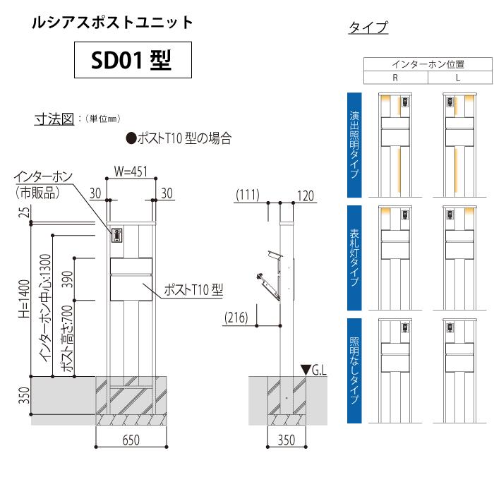 | 商品名 | ルシアスポストユニット SD01型 照明なしタイプ 本体 木調色 ポスト T10型(前出し) アルミ色 機能門柱 機能ポール 一戸建て用 屋外 一体型セット |